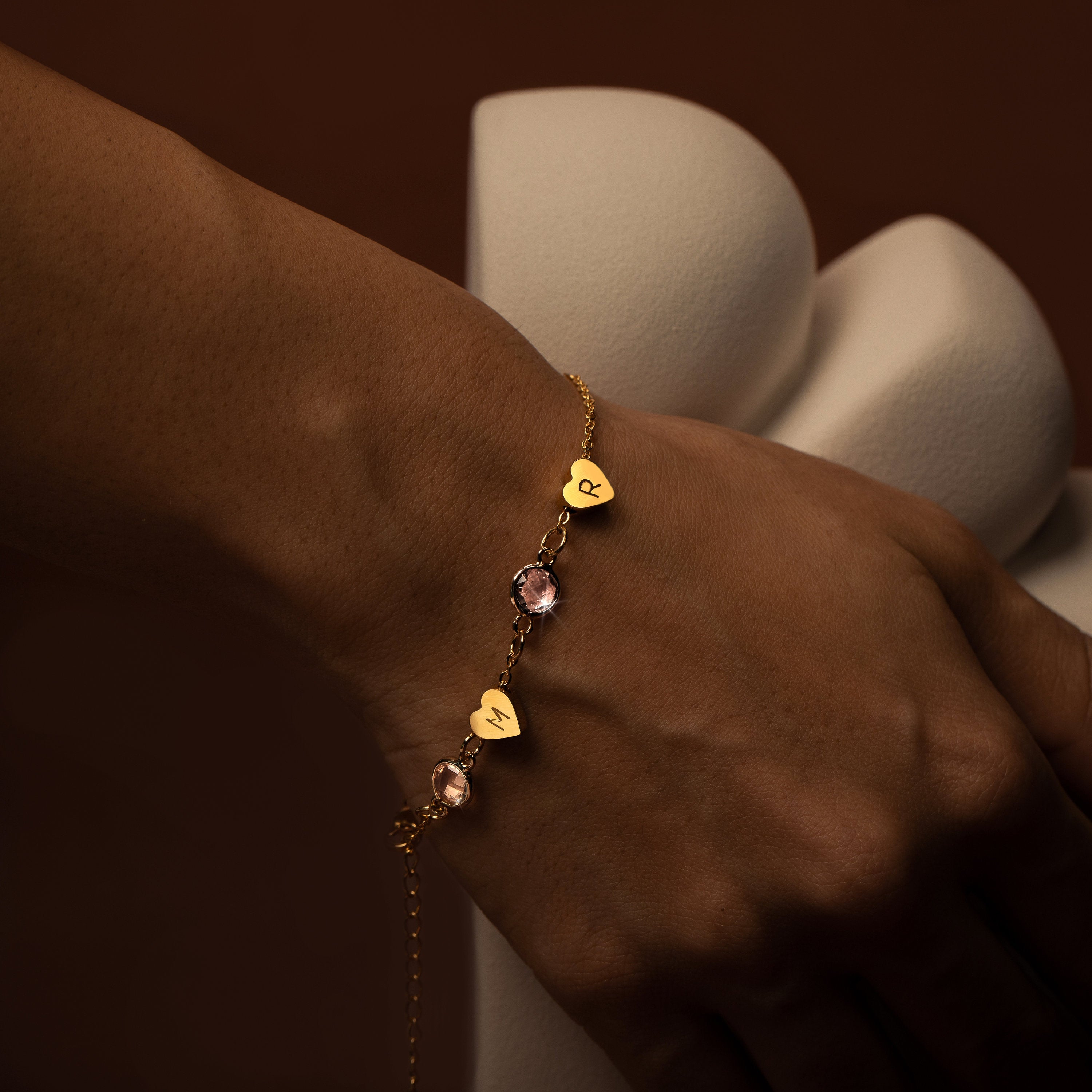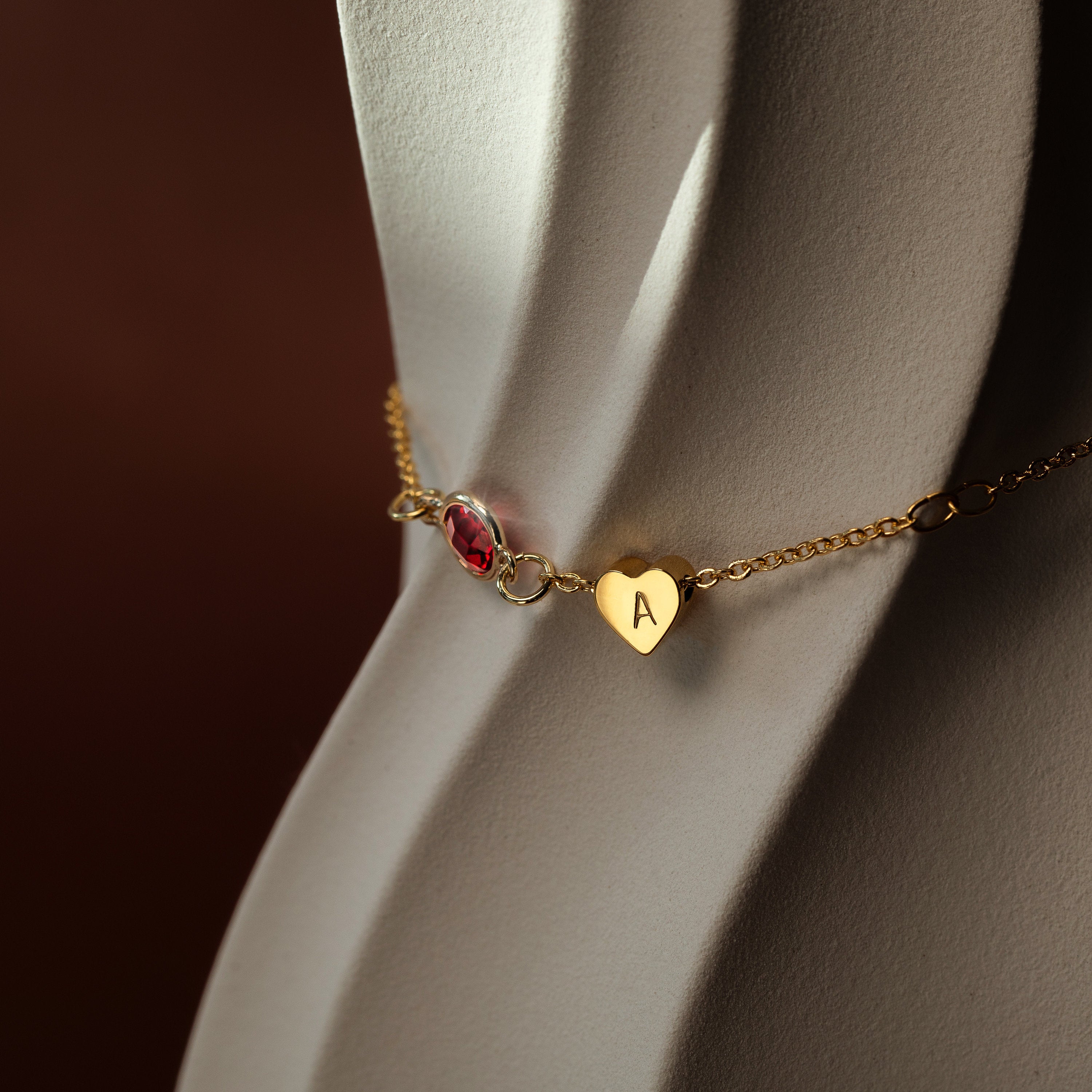 Celebrate your story with our Personalized Heart Birthstone Bracelet, a timeless piece that beautifully captures individuality and sentiment. Crafted with care, it features a delicate heart charm engraved with your chosen initial and paired with a sparkling birthstone—symbolizing love, connection, and the unique qualities of each month. A meaningful gift or personal keepsake, this bracelet adds elegance and a touch of personalized sophistication to any look.