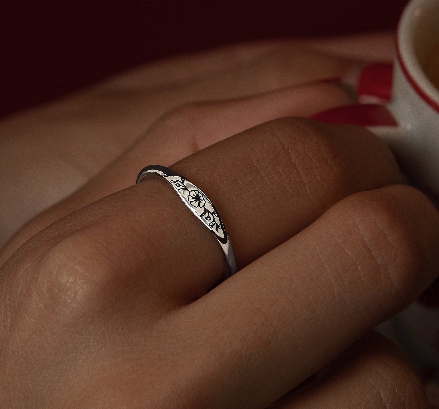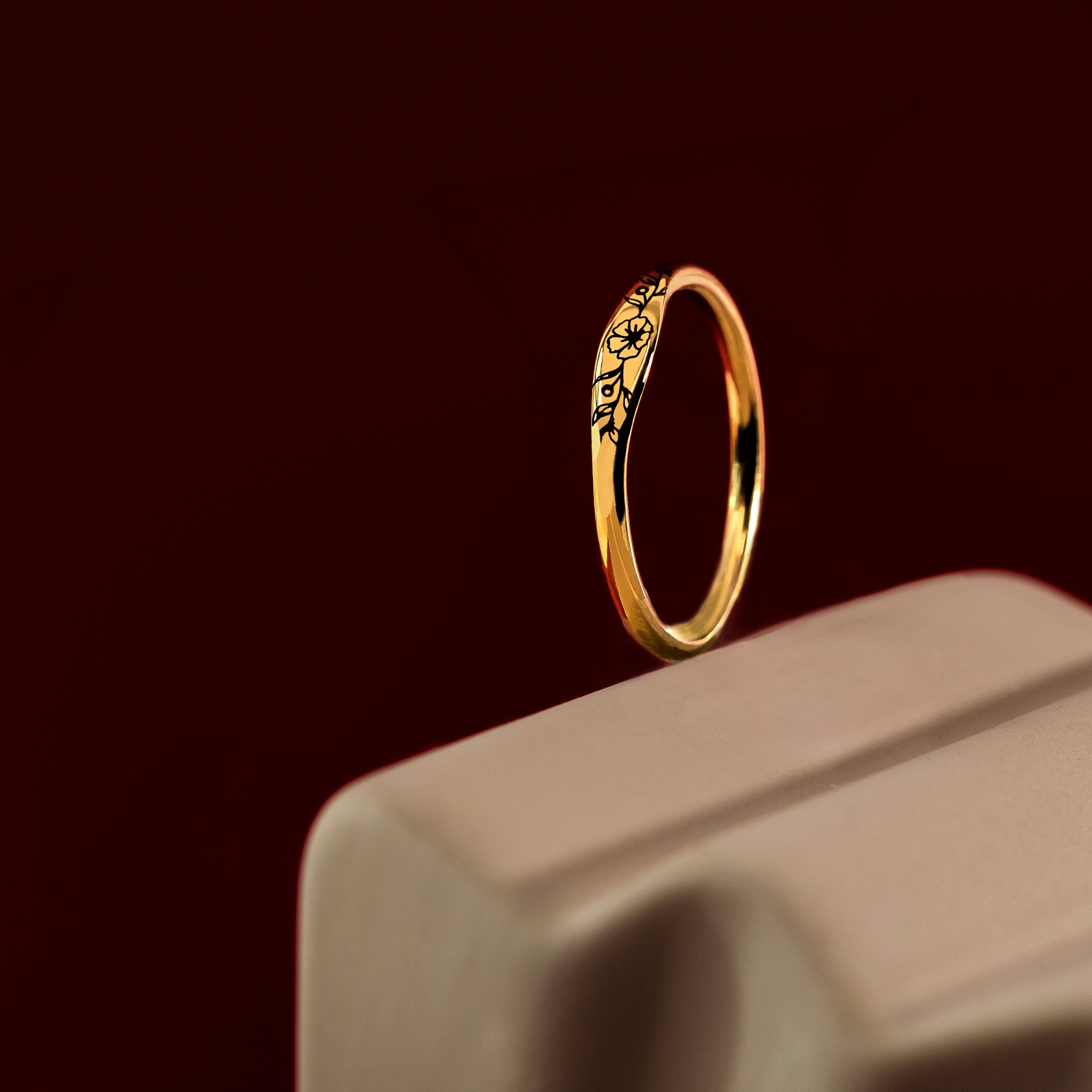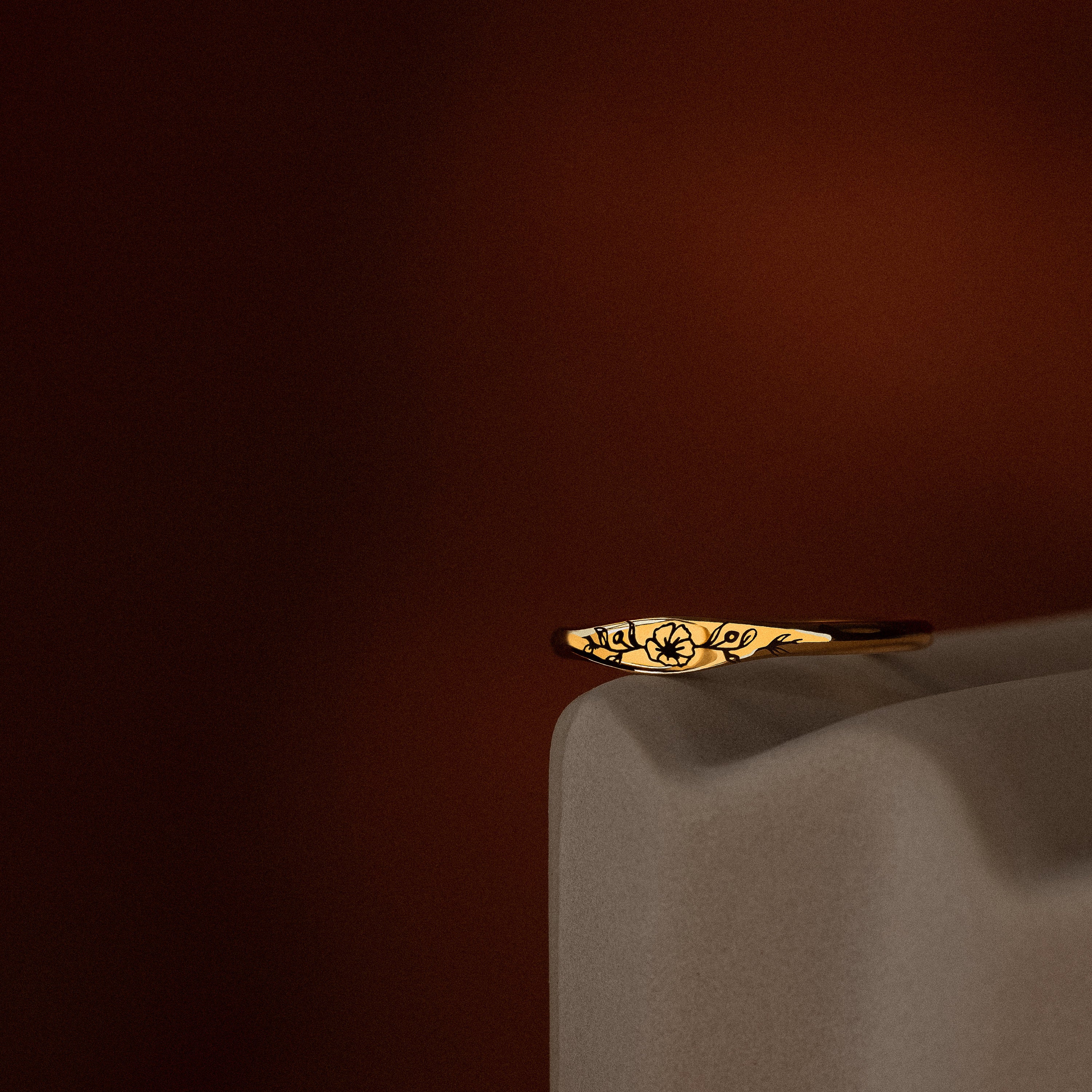 A delicate personalized birth flower ring, handcrafted in gold, silver, or rose gold. A timeless gift that celebrates love, nature, and individuality.