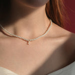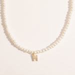 Timeless elegance meets personal meaning with our Dainty Pearl Initial Necklace. Each luminous pearl is hand-selected for its natural radiance, beautifully strung together to create a classic strand. At the center, a sparkling zircon initial adds a bespoke touch—engraved with the name of your choice for a piece that’s both sophisticated and sentimental. Perfect for elevating any look or gifting to someone special.