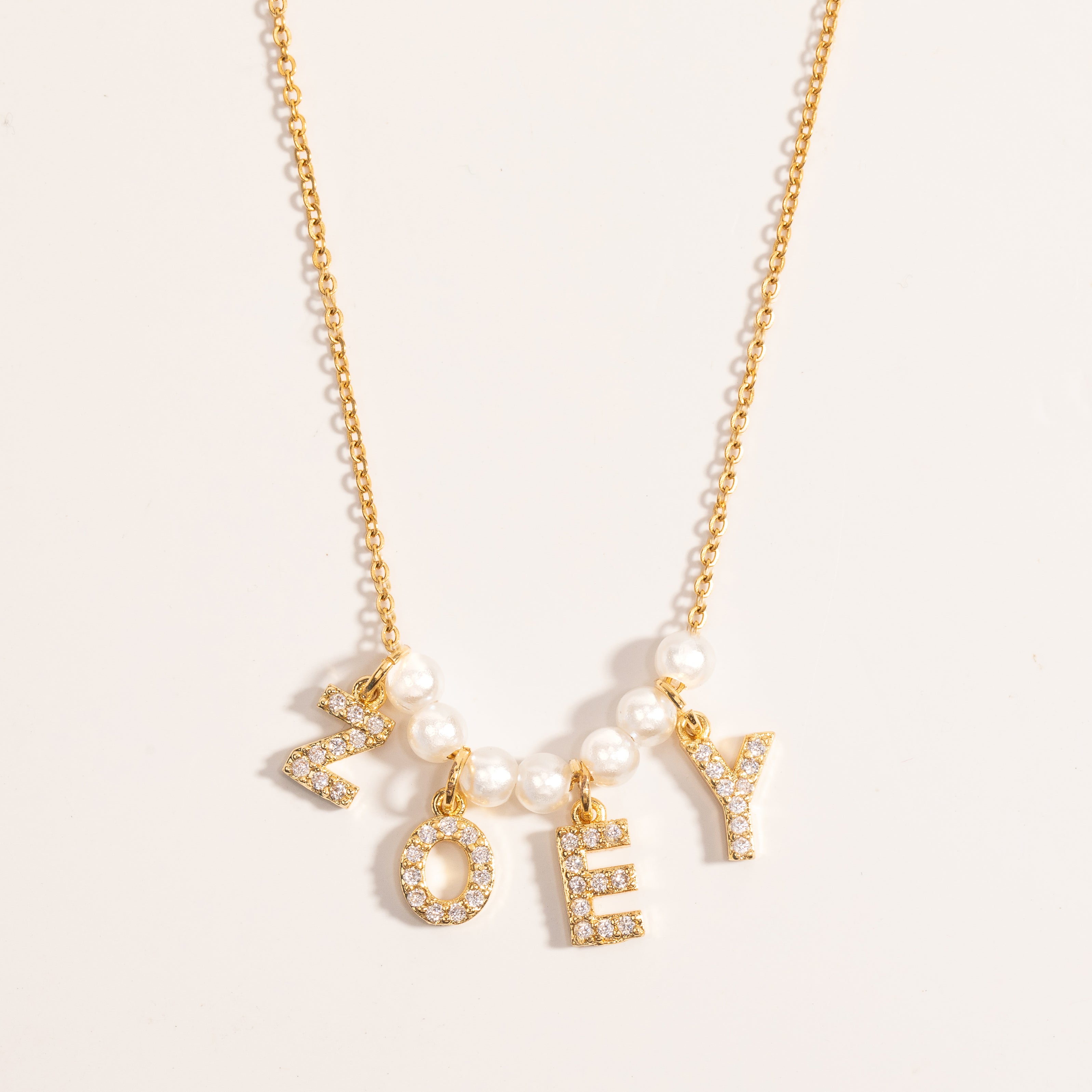 Capture the essence of your unique identity with our exquisite personalized necklace featuring lustrous pearls delicately arranged alongside your chosen initials. Each letter is carefully crafted to reflect your individuality, allowing you to create a name or word that holds special significance to you. Whether it's your own initials, a loved one's name, or a cherished word, this stunning piece serves as a timeless expression of your style and personality. Embrace the elegance of custom jewelry and make a statement that is truly yours.