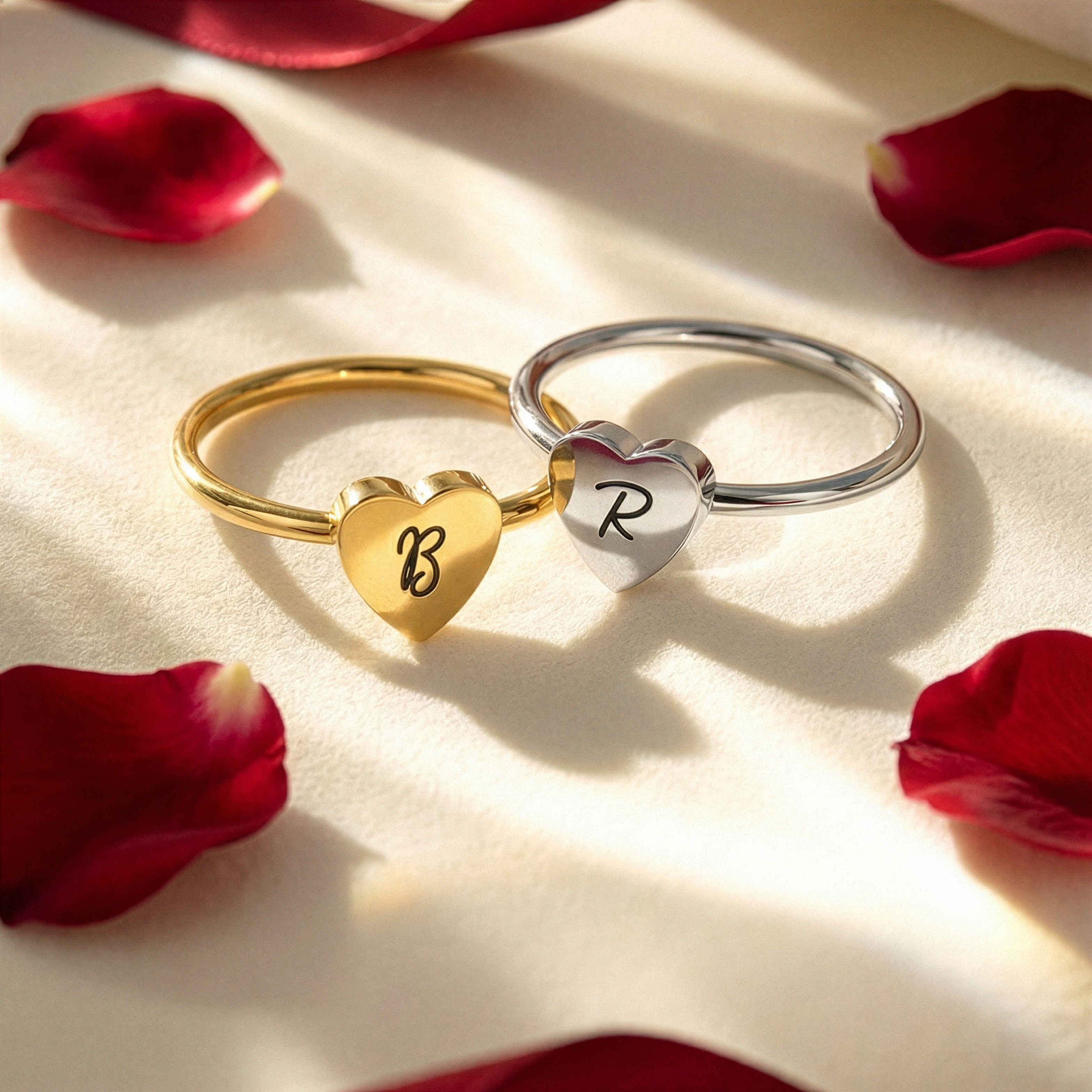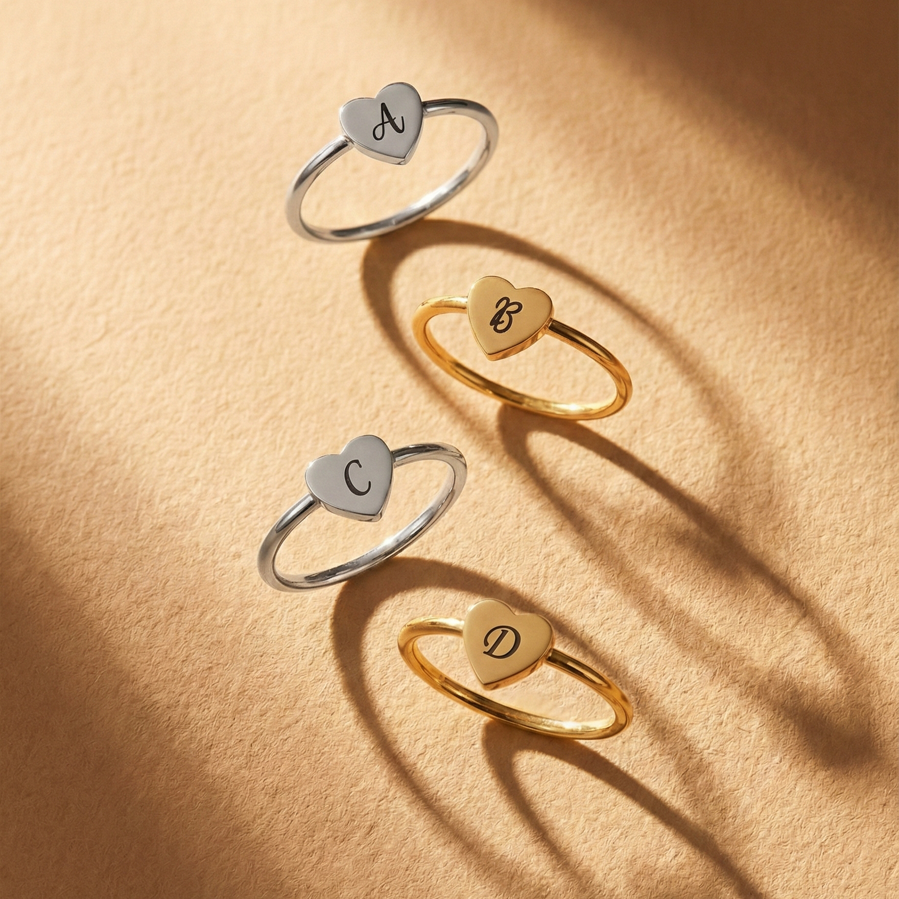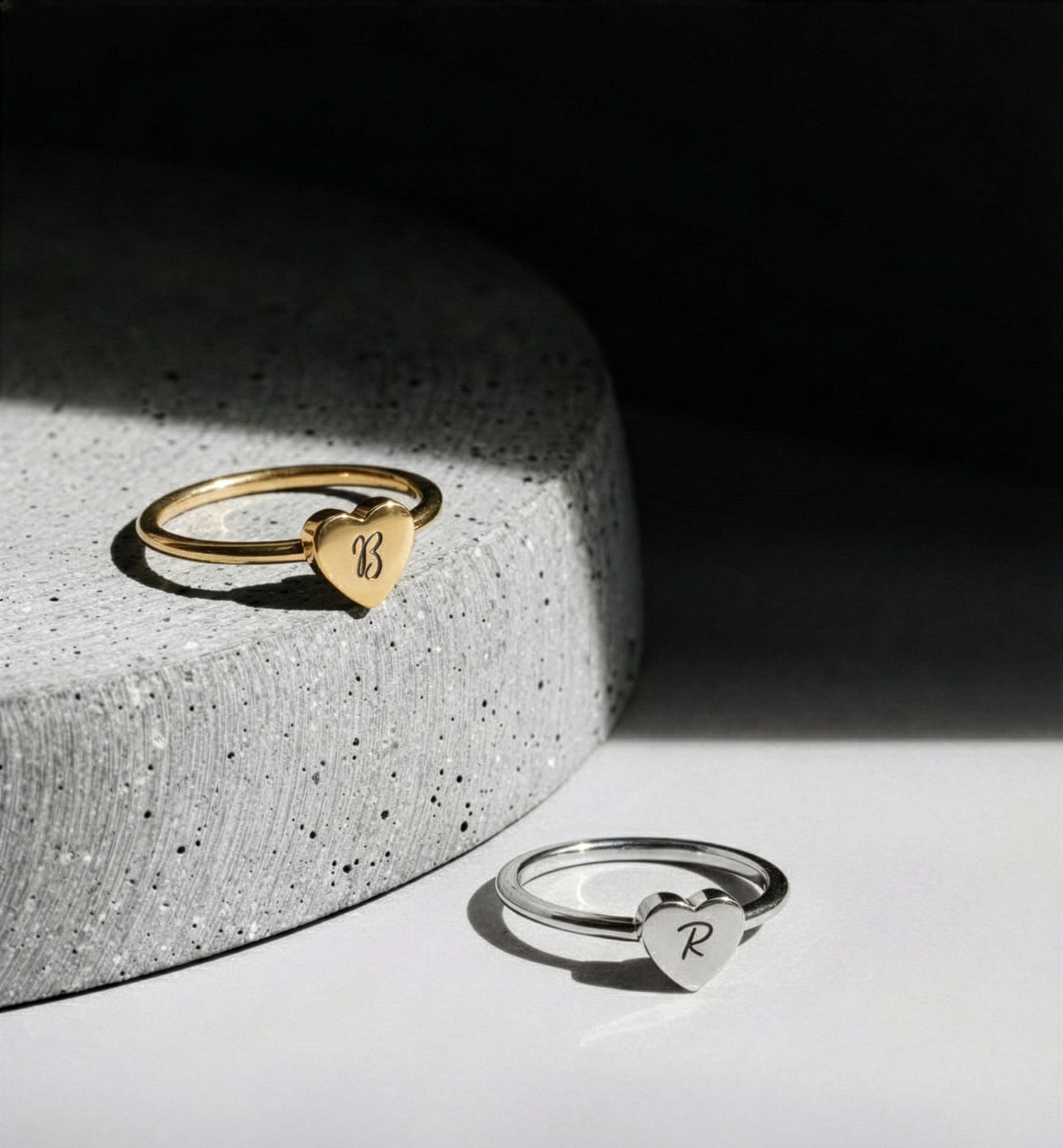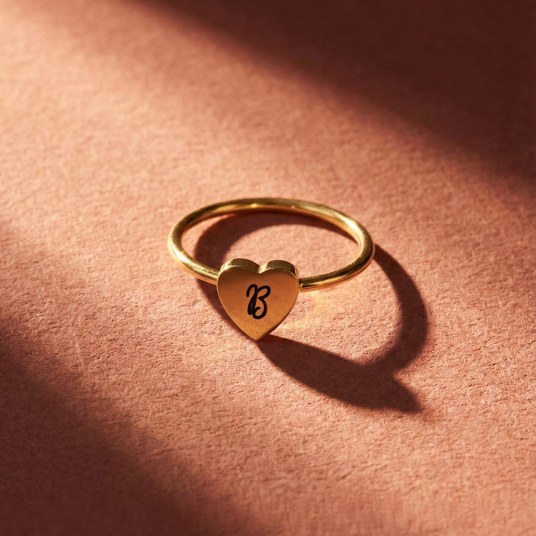 Introducing our exquisite Initial Heart Ring, a symbol of love and individuality. Crafted with precision and passion, this stunning piece is a true embodiment of elegance and sentiment. Its delicate heart-shaped design is adorned with your chosen initials, making it a truly unique and meaningful accessory.