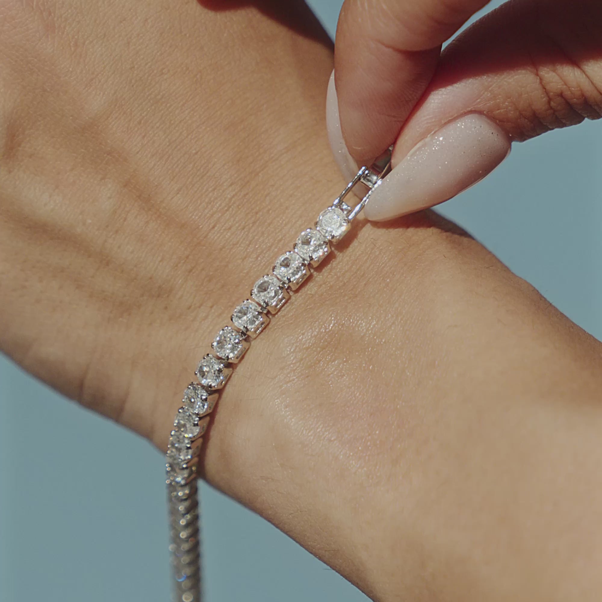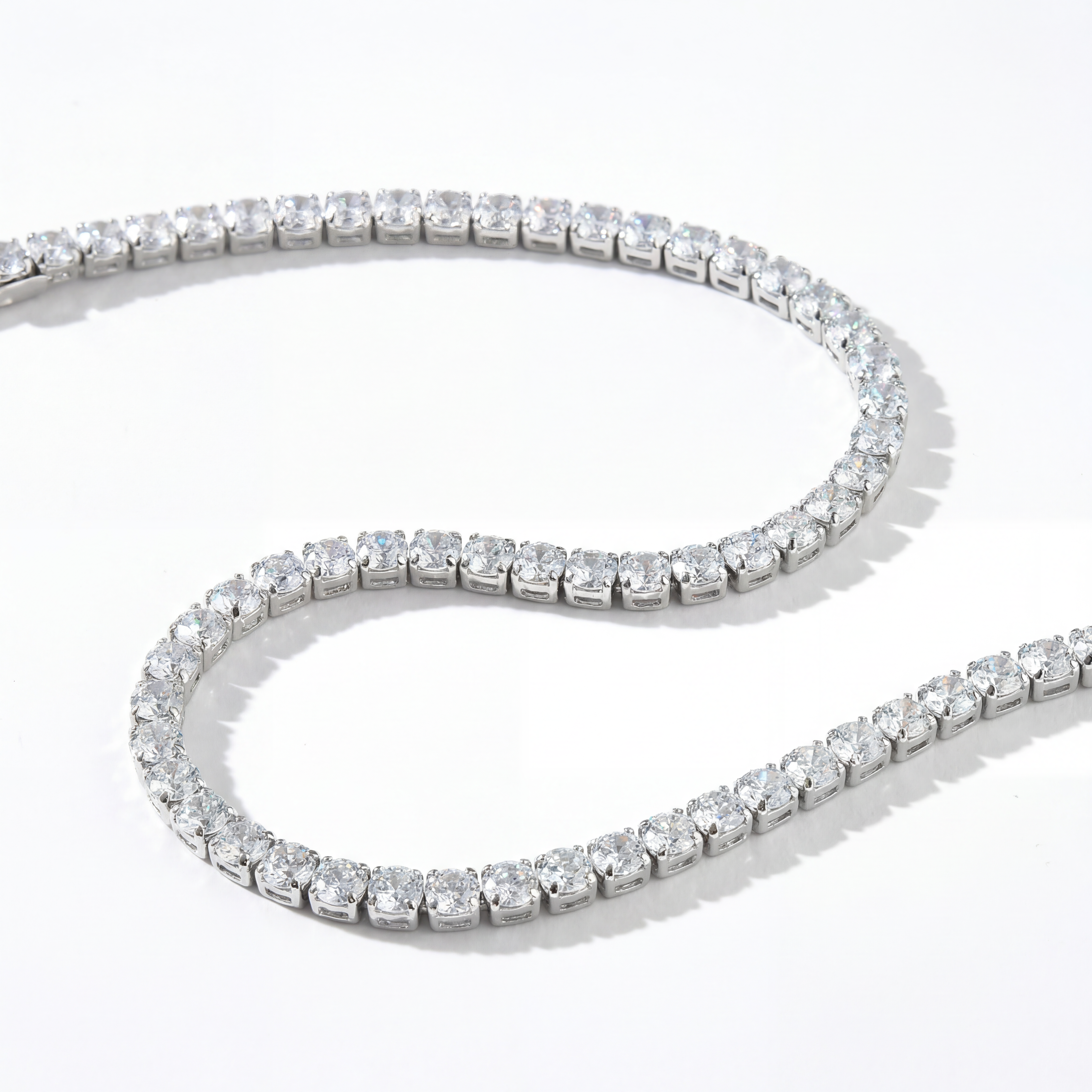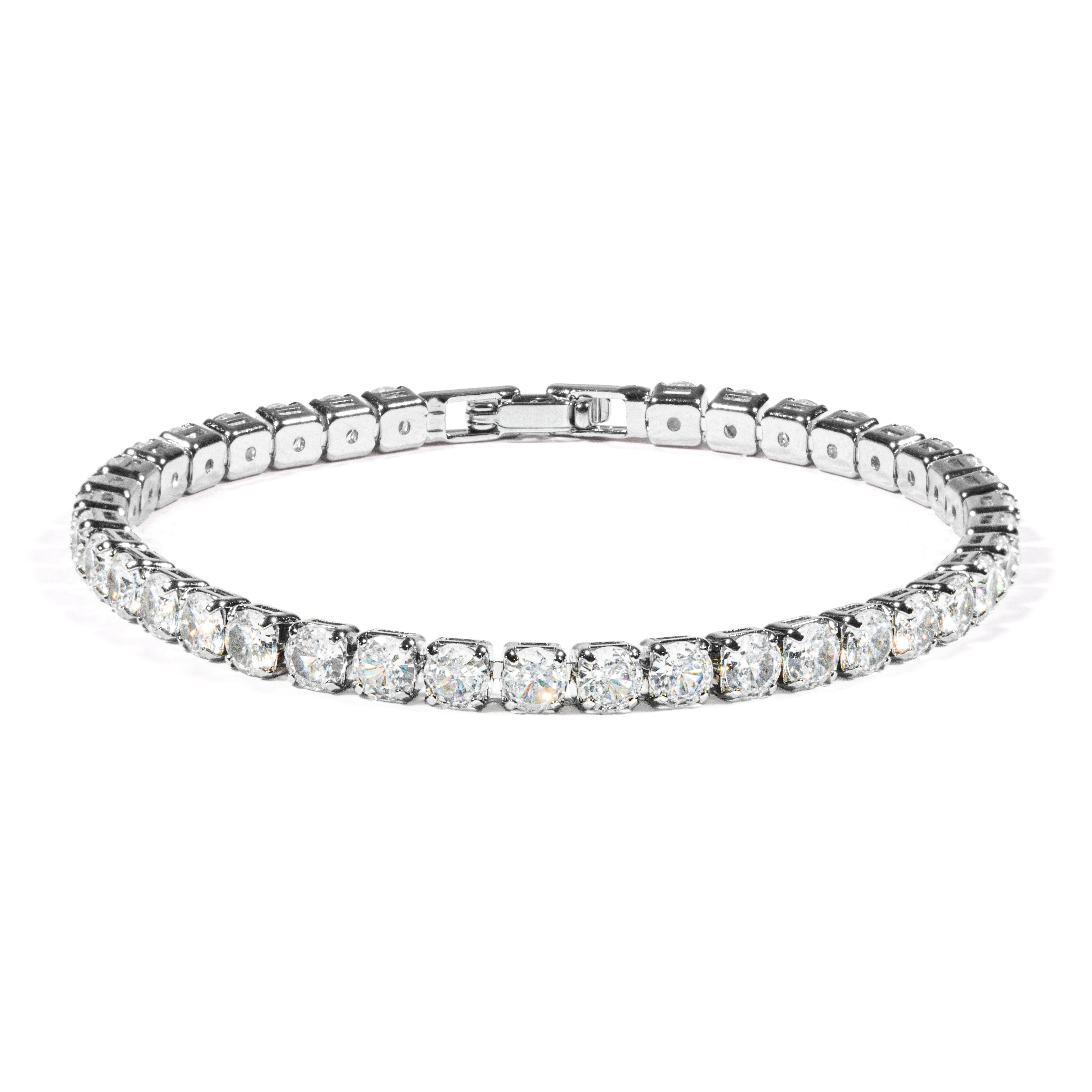 Our Round CZ Tennis Bracelet features a continuous row of brilliant round-cut cubic zirconia stones, each one individually prong-set for a secure, elevated look that mirrors the sparkle of real diamonds.