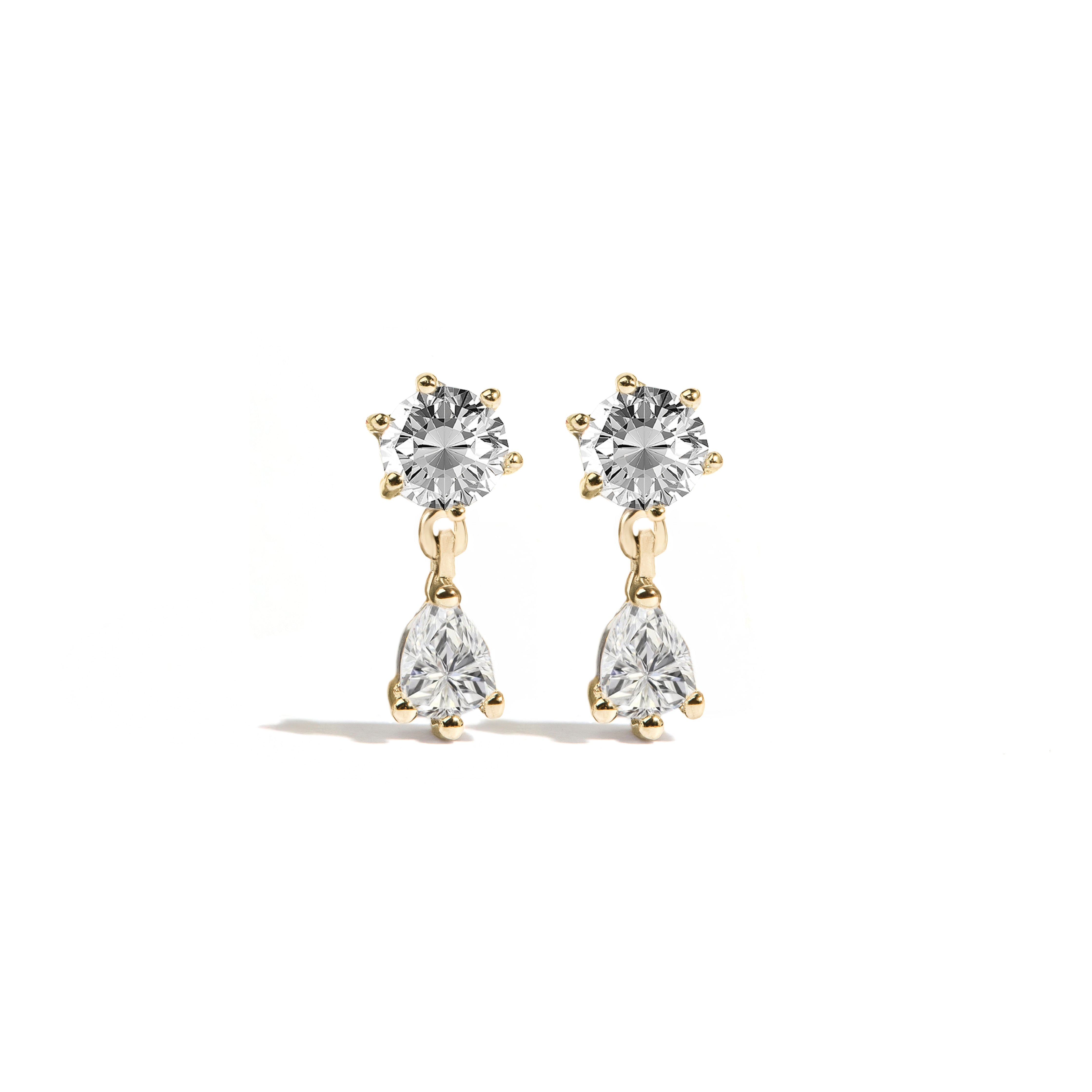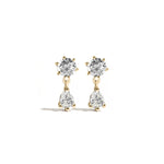 Elevate your everyday style with these stunning Diamond Drop Stud Earrings, featuring a brilliant round-cut cubic zirconia paired with a shimmering pear-shaped CZ drop. Crafted in a polished gold-plated finish, these CZ drop earrings offer lightweight comfort, radiant sparkle, and a timeless silhouette that easily transitions from day to night. Their minimalist design adds refined shine to casual outfits, work wear, or elegant evening looks.