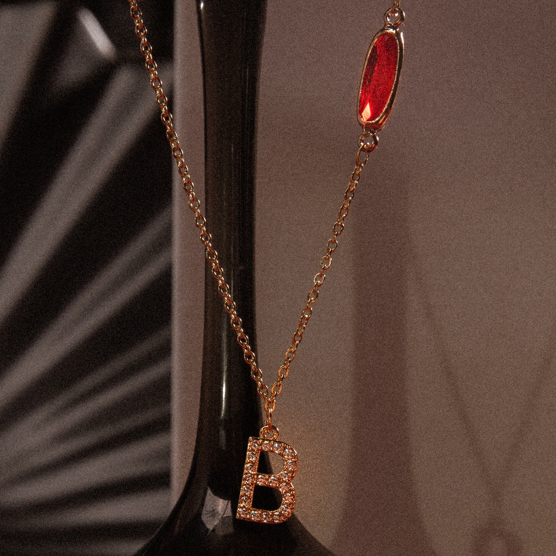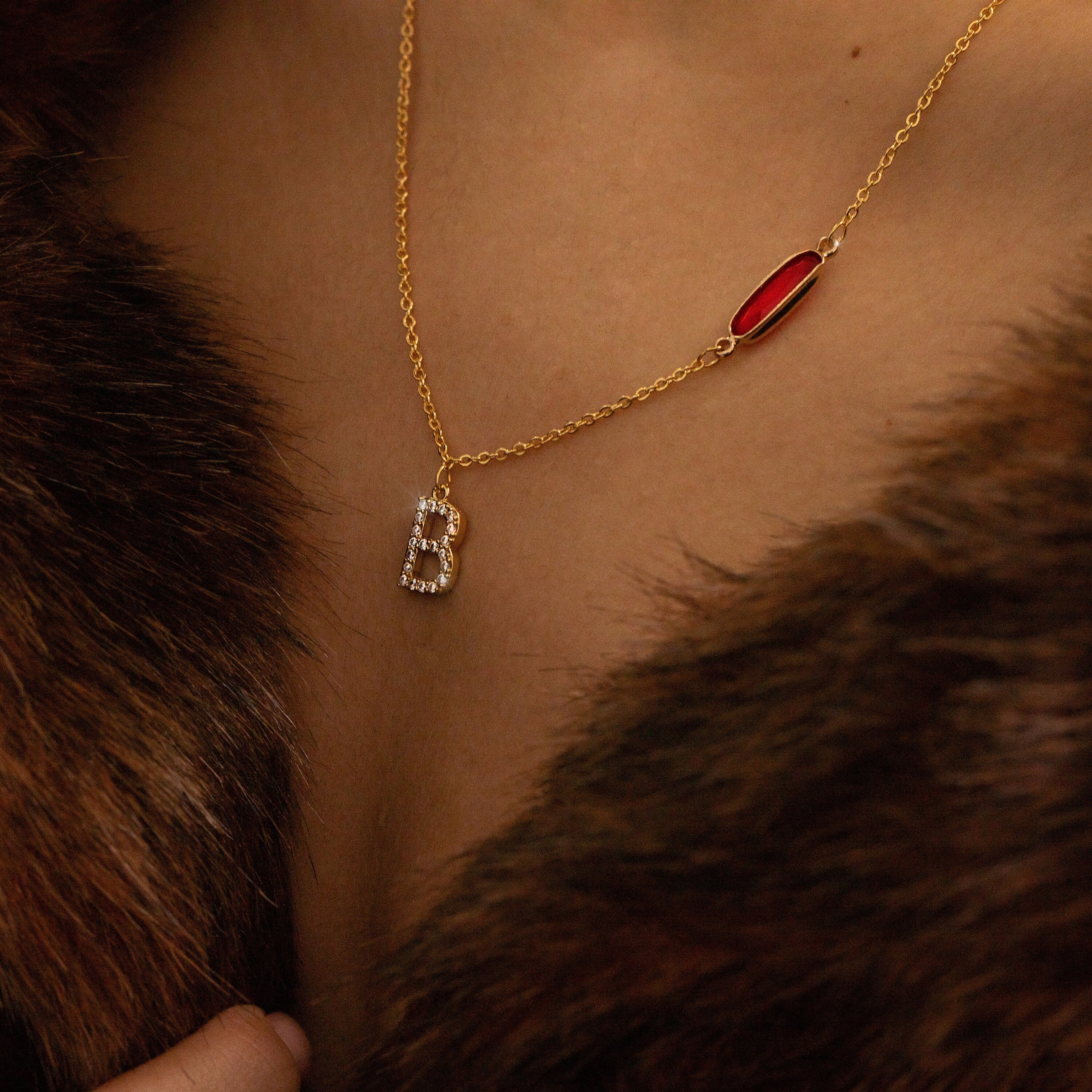 Collar largo con inicial y piedra de nacimiento