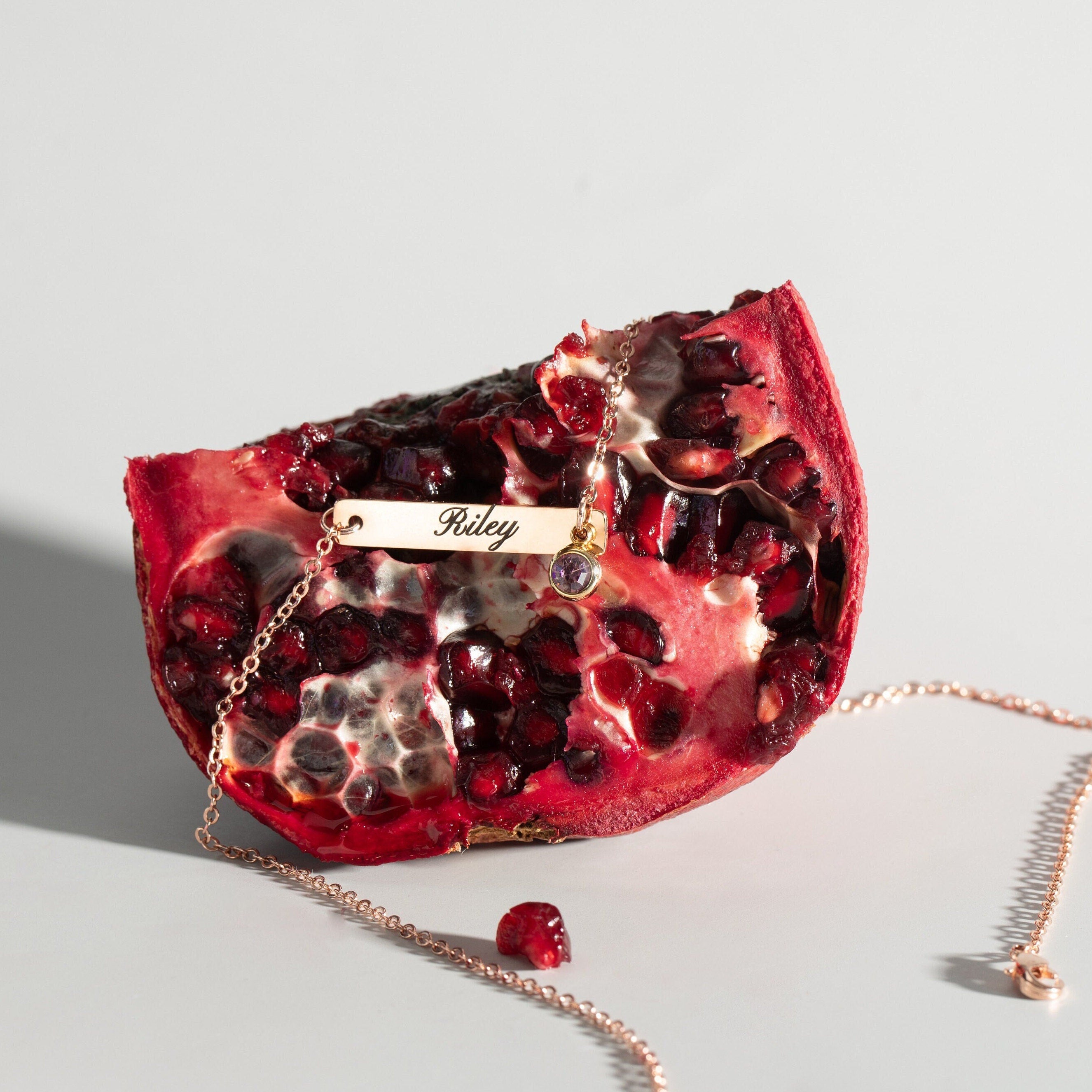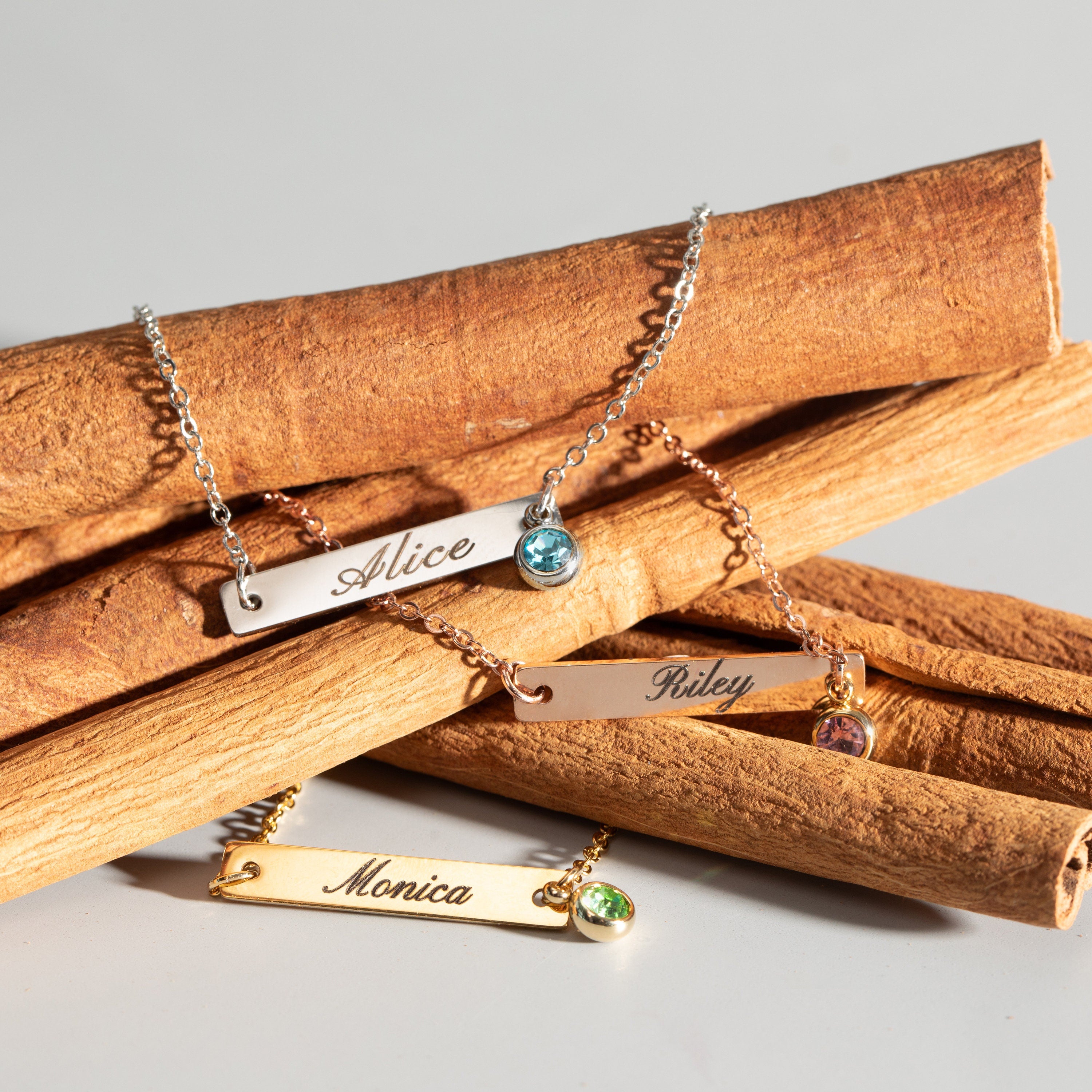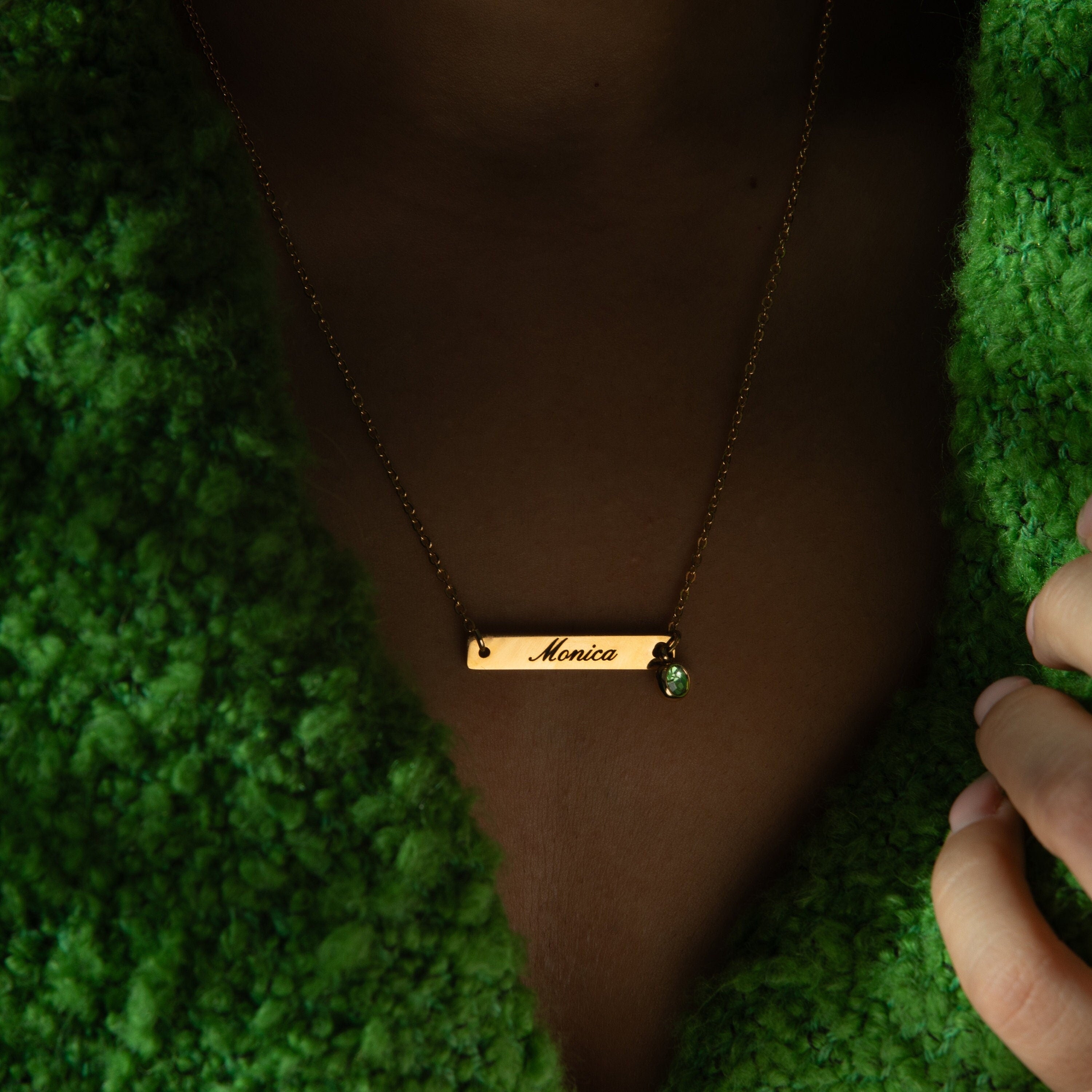 Collar con nombre y barra de piedra de nacimiento personalizado