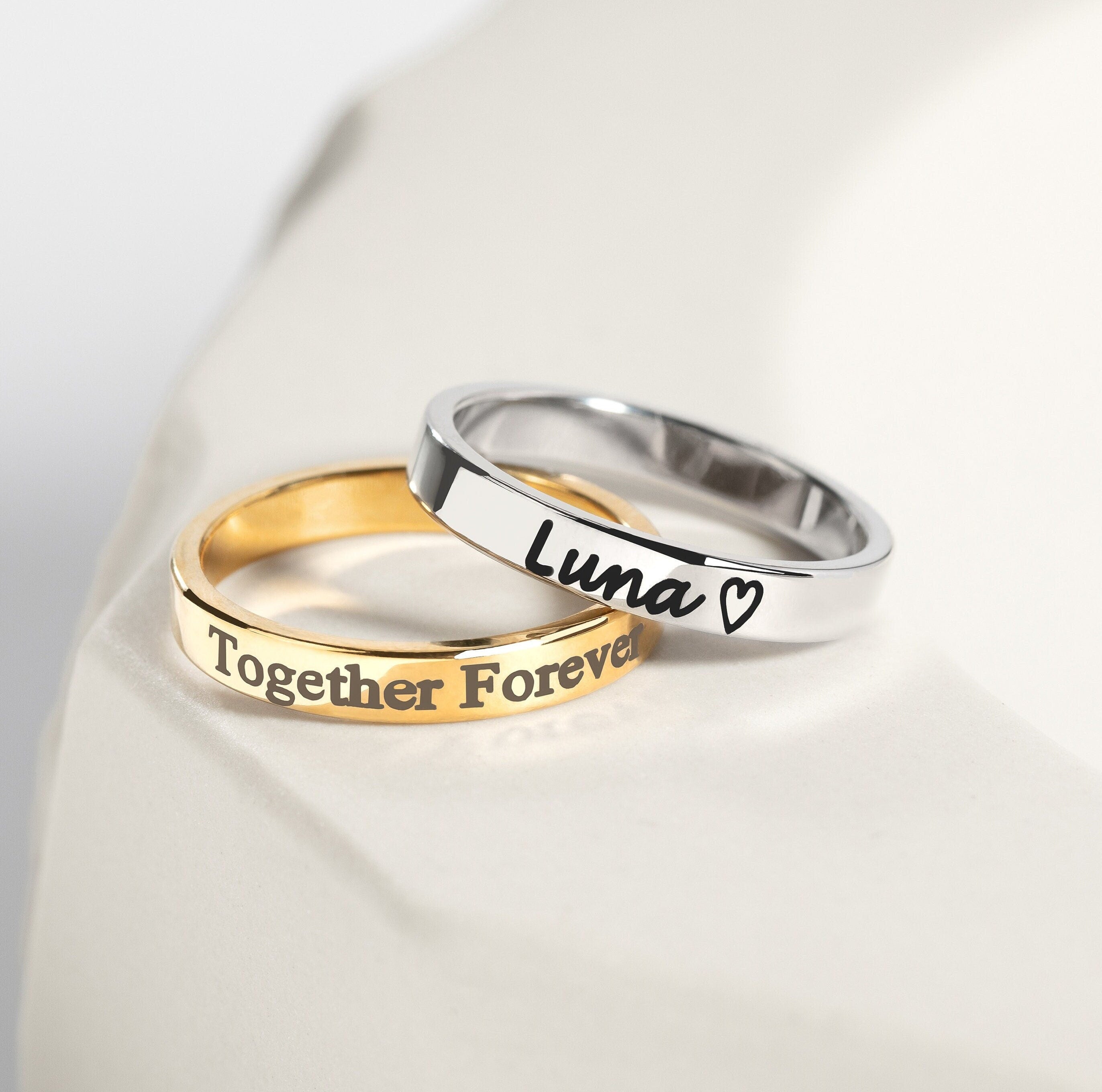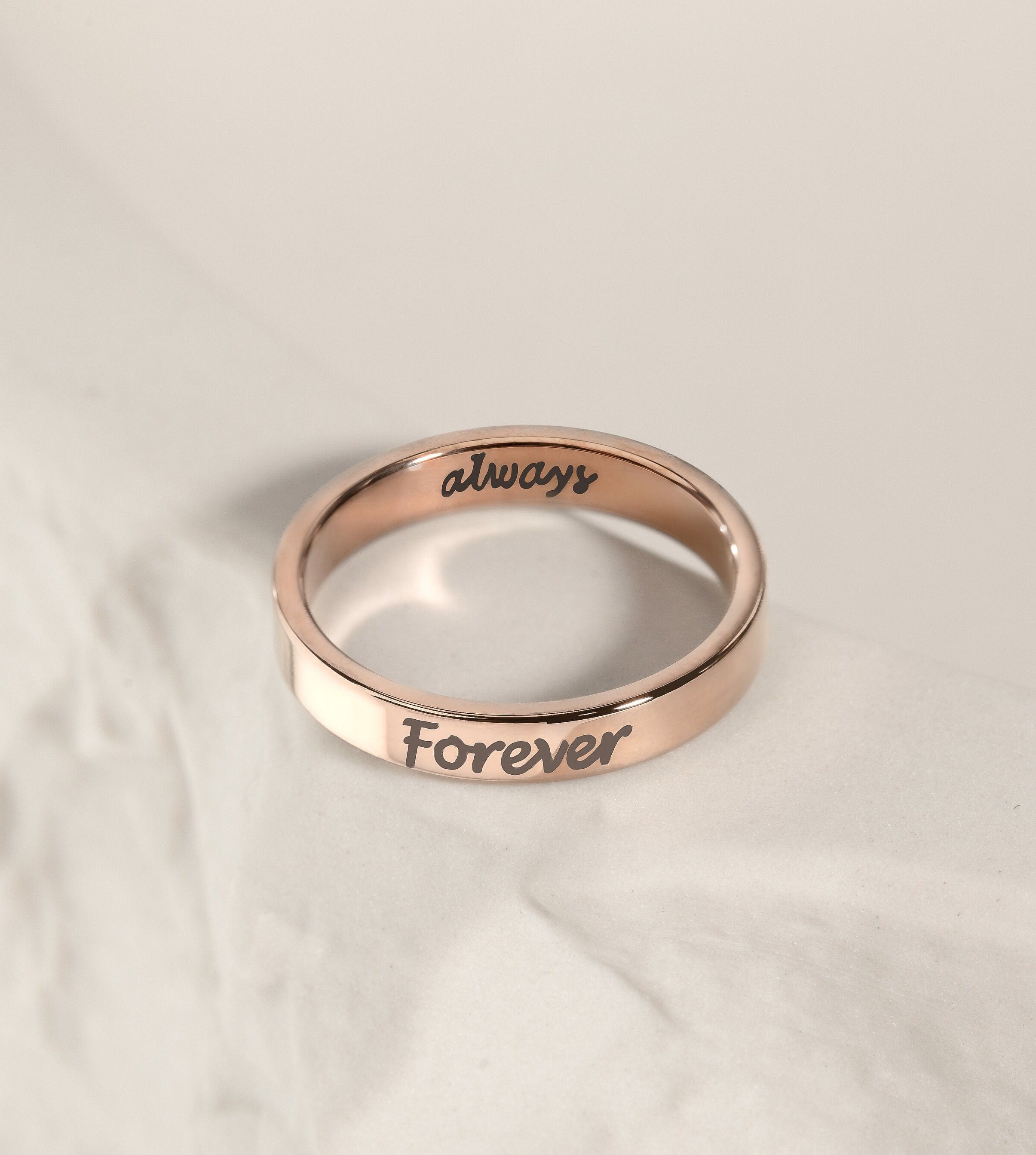 This fashionable flat ring band is dainty and elegant. While it is simple in design, you can personalize yours with inspirational messages, custom coordinates, name, or initials, for the truly unique graduation, birthday, anniversary, Christmas, engagement ring and friendship gift. Its sleek design also makes it versatile and playful, a must-have accessory for every trendsetter.