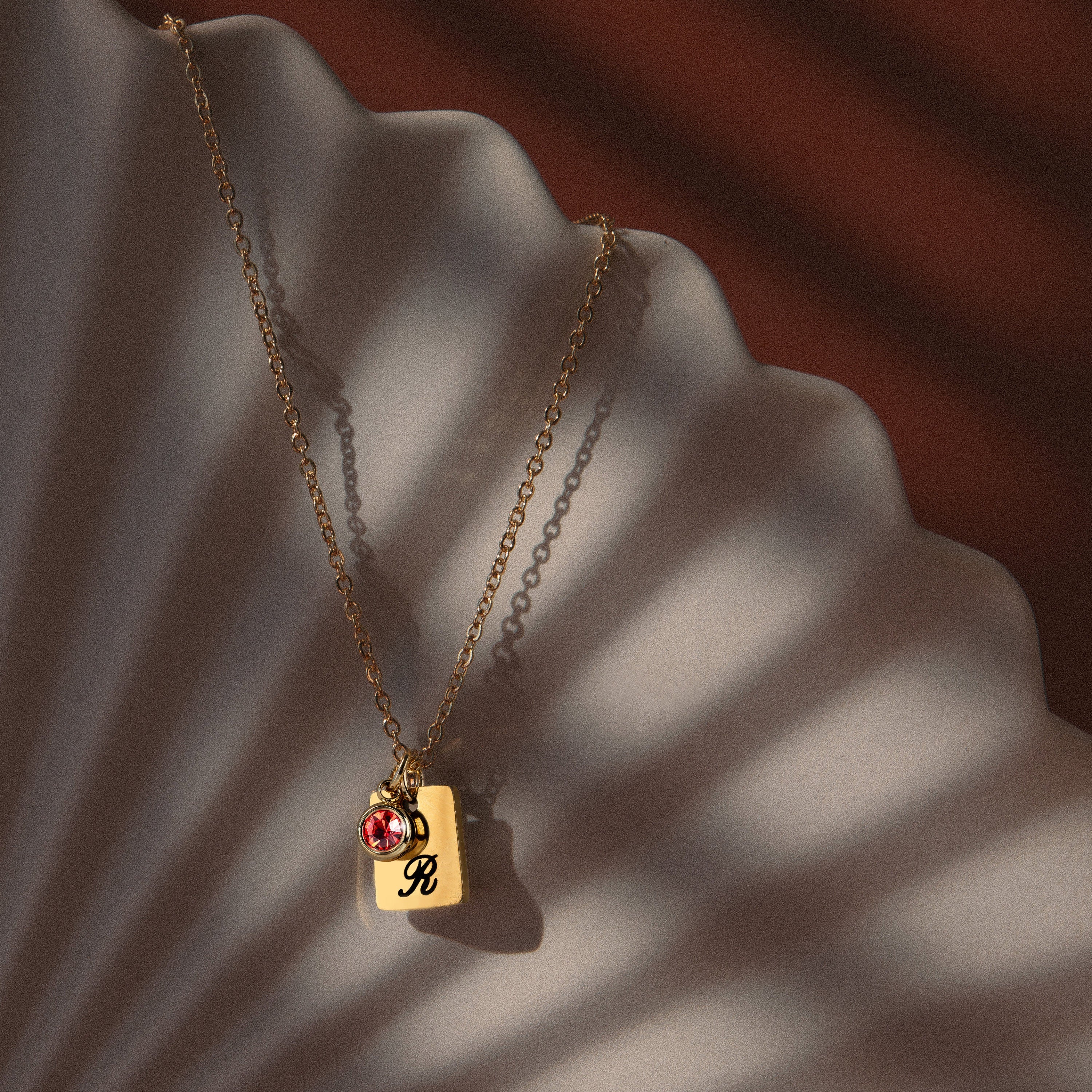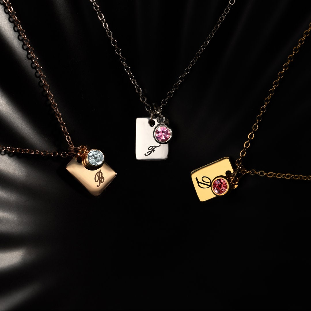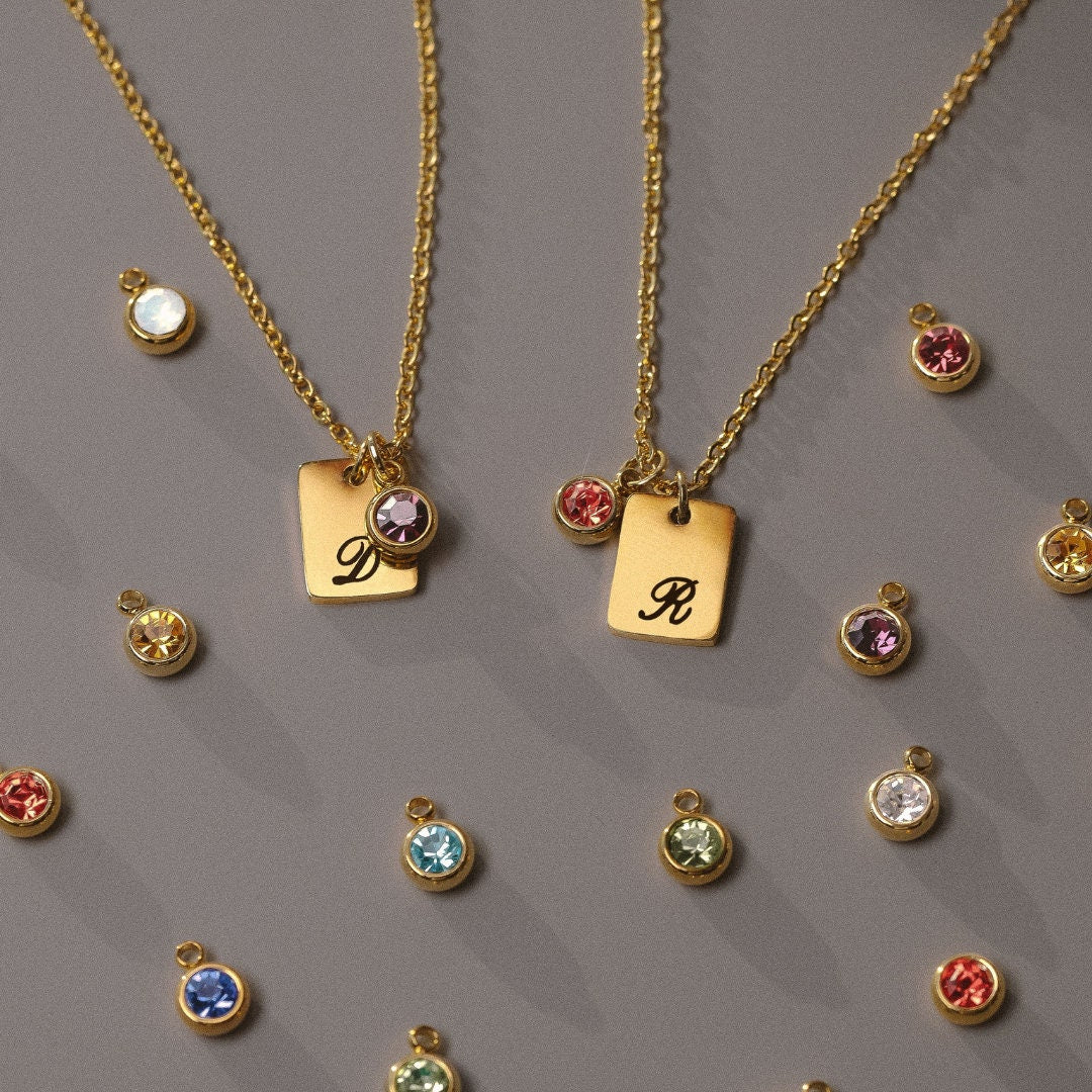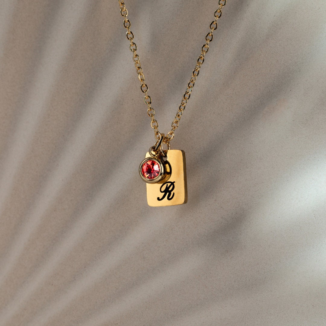initial Birthstone Tag Necklace